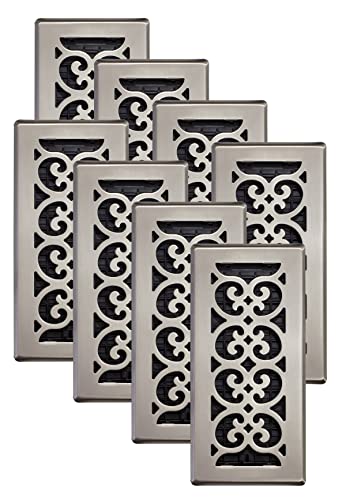 Decor Grates SPH410-NKL-8 Scroll Design Floor Register, 4x10 Inches, Brushed Nickel Finish, 8 Pack -